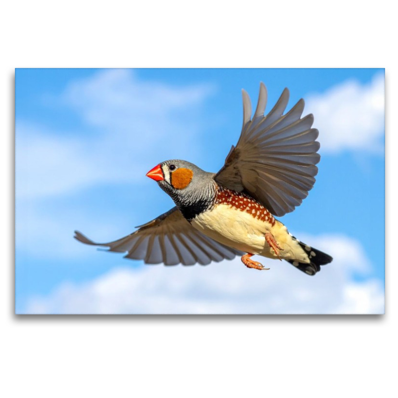 Entdecken Sie die quirrlige Welt der Zebrafinken in diesem kunstvoll gestalteten Bild. Jedes Detail wurde mithilfe moderner KI kreativ erzeugt, sodass die Szene voller Farben, Bewegung und Charme steckt. Die kleinen Schwarmvögel scheinen fast lebendig zu sein, während sie durch Gras, Sand oder unter australischem Himmel fliegen. Ein faszinierendes Motiv für Tierliebhaber, Naturliebhaber oder alle, die Freude an lebendigen, originellen Motiven haben.